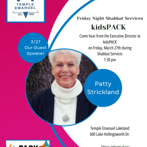 Shabbat Guest Speaker Patty Strickland kidsPACK