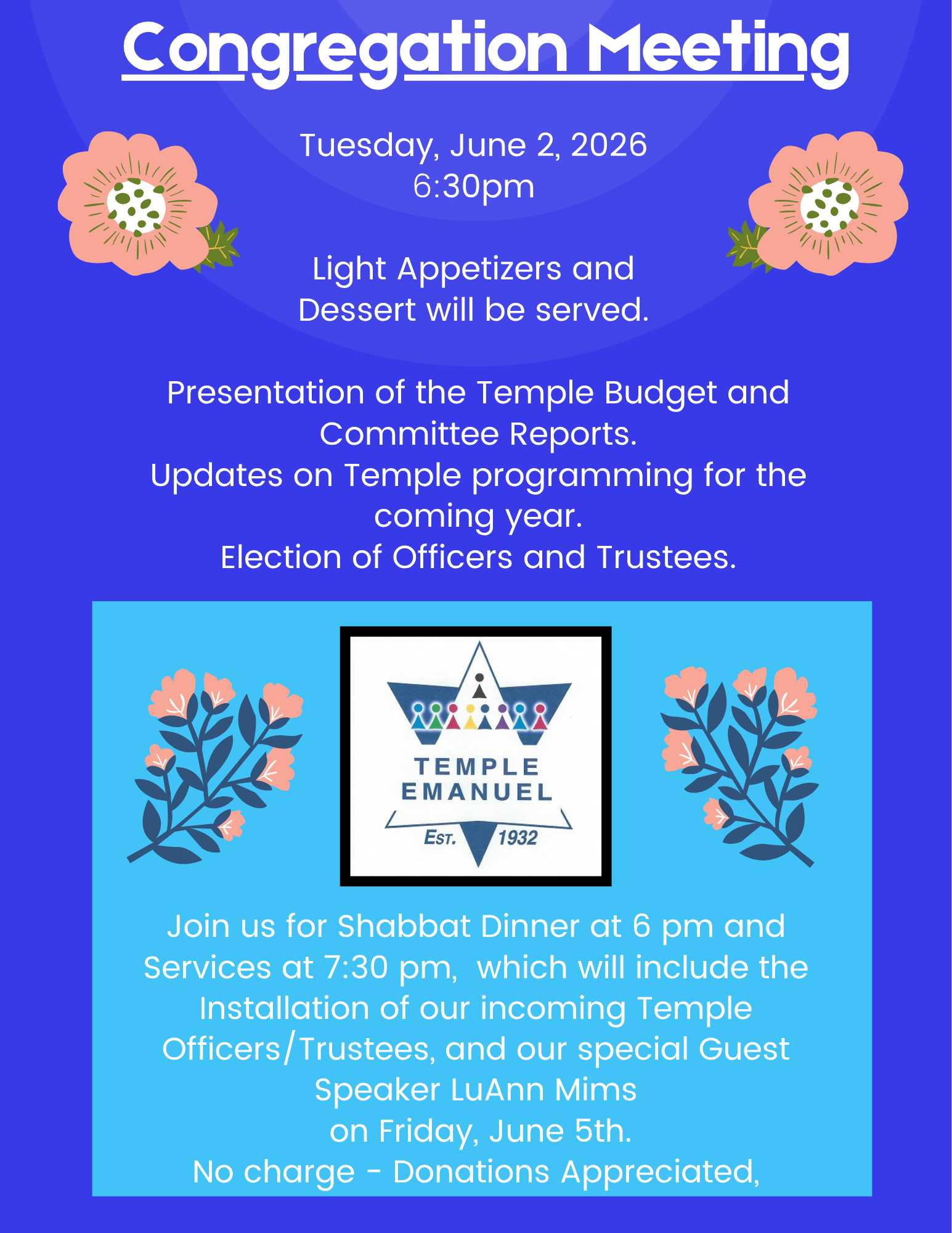 CONGREGATION MEETING – BOARD ELECTIONS