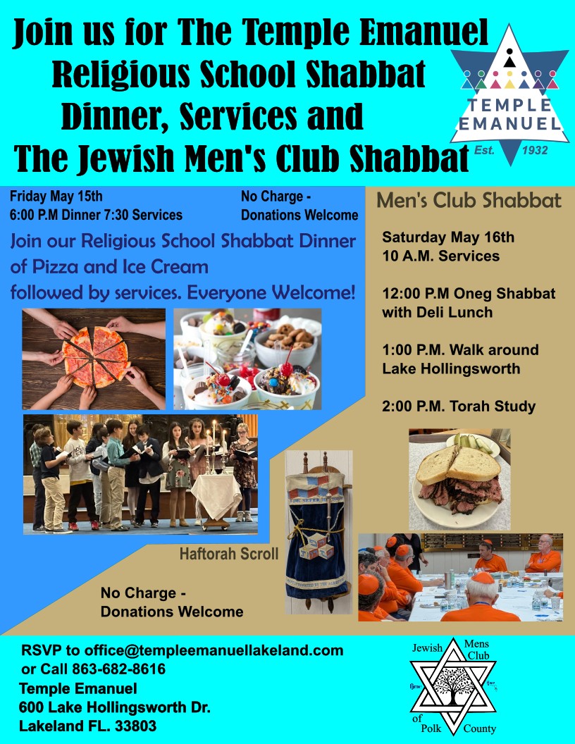 Please RSVP to office@TempleEmanuleLakeland.com or call 863-682-6818